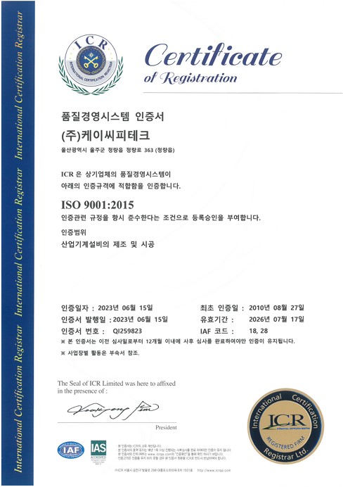 품질관리 엄격한 품질 관리 절차를 통해 현장 시공 및 설치·시운전 작업이 안전하고 규격에 맞게 처리되도록 하며, 고객에게 최상의 서비스를 제공하기 위해 지속적으로 품질 개선에 힘쓰고 있습니다. 고객만족 Customer Satisfaction 고객의 기대와 요구에 맞는 서비스 제공 교육훈련 및 업무개선 Training and Operational Improvement 지속적인 교육을 통한 안전 작업의 생활화 및 팀별 협력을 통한 업무개선 표준화 작업 Standardization Work SOP업무 표준화